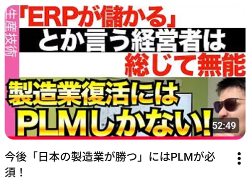 「ものづくり太郎チャンネル」 にて、当社のPLM~ERPの取り組みが紹介されました。 動画では当社の金型設計~量産までのBOM連携の仕組みとそれを支える組織・業務体制、そこから生み出される価値について取り上げられています。